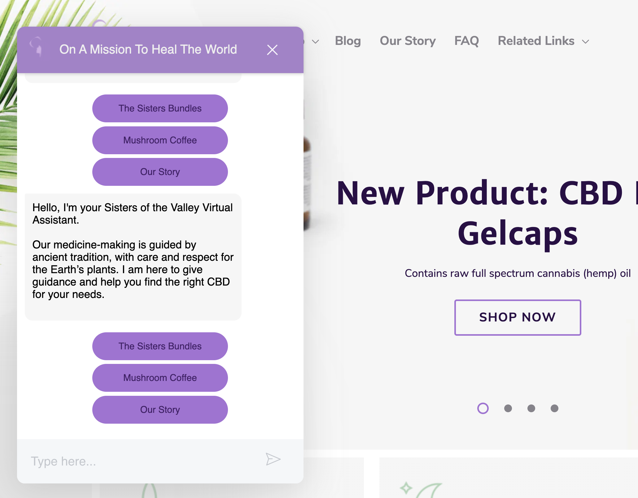 An artificial intelligence bot was introduced by The Sisters of the Valley to assist people in determining which products best meet their needs.